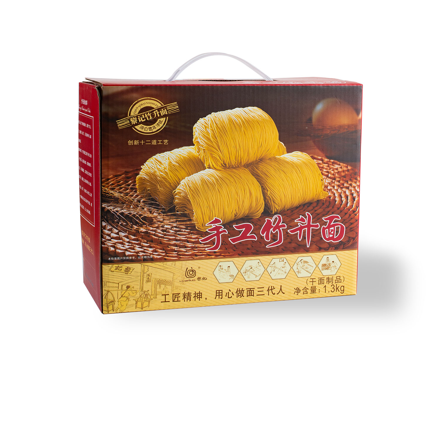 Embalagem de caixa de 1,25 kg macarrão de ovo artesanal chinês com embalagem individual para cada macarrão